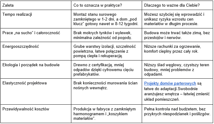 Domy w technologii szkieletowej zyskują na popularności, ale zanim zdecydujesz się na ten typ budownictwa, warto zobaczyć w jednym miejscu wszystkie zalety – nie tylko z perspektywy technicznej, ale przede wszystkim praktycznej.