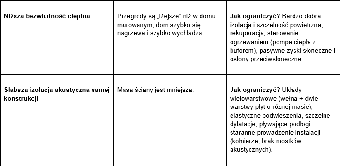 Dom murowany długo utrzymuje temperaturę, szkieletowy szybciej reaguje na zmiany. Wystarczy jednak zastosować odpowiednią technologię, aby uzyskać porównywalne parametry cieplne.