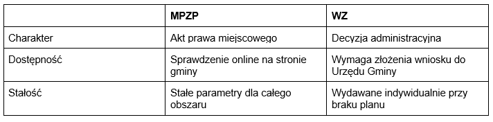 Zasadnicze znaczenie ma to, czy status prawny pozwala na wzniesienie obiektu. Informacja ta wynika bezpośrednio z obowiązującego MPZP lub decyzji WZ i jest potwierdzona w dokumentach własnościowych, takich jak akt notarialny oraz wpisy w księdze wieczystej, które określają prawo własności nieruchomości.