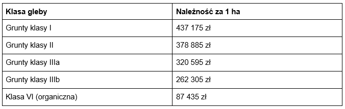 Decydujące znaczenie mają klasa bonitacyjna gleby, powierzchnia wyłączana z produkcji rolnej i możliwość zastosowania zwolnień (np. 500 m2).