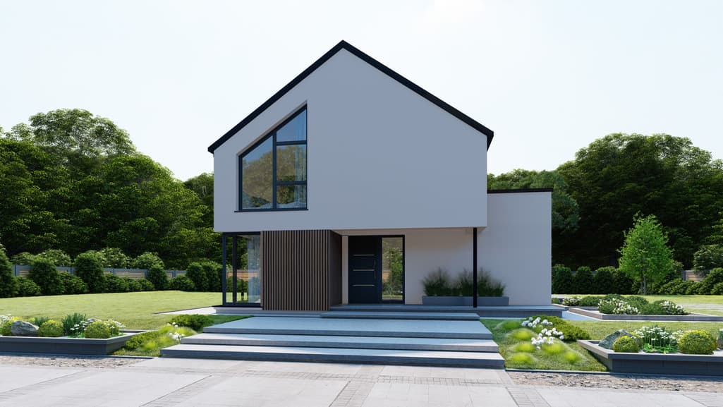 Aby dom był energooszczędny, od zewnątrz dochodzi jeszcze warstwa dodatkowego ocieplenia, ukryta pod elewacją, której wygląd możemy dobrać praktycznie bez ograniczeń.