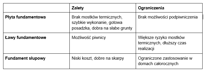 Równie istotna jest ochrona drewna przed wilgocią z gruntu oraz zapewnienie odporności na siły podrywające działające od wiatru. Fundament musi oddzielać konstrukcję od wilgoci poprzez ciągłą izolację przeciwwilgociową i zapewniać zakotwienie szkieletu, które gwarantuje stabilność konstrukcji. Zgodnie z wymaganiami Eurokodu, posadowienie budynku powinno być zaprojektowane w taki sposób, aby nie dochodziło do nadmiernych przemieszczeń ani utraty nośności, a fundament był w pełni dostosowany do lekkiej konstrukcji, a nie kopiował rozwiązań z budownictwa murowanego.