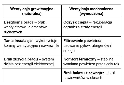 Jakie różnice występują między wentylacją mechaniczną a grawitacyjną?
