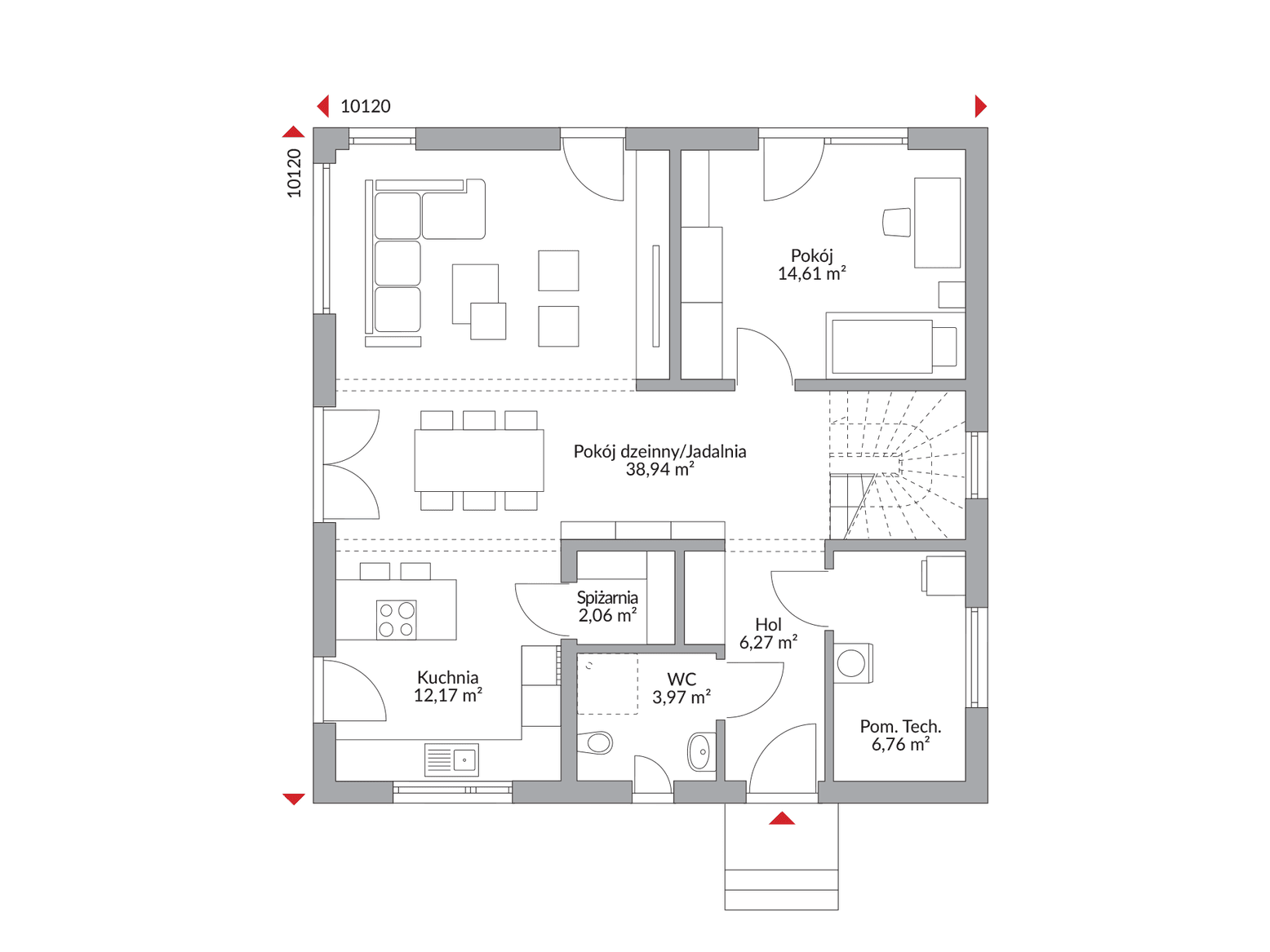 Na parterze sercem domu jest przestronna, otwarta strefa dzienna, gdzie salon i jadalnia tworzą idealne miejsce do wspólnego życia i przyjmowania gości. Otwarta kuchnia, być może z przylegającą do niej praktyczną spiżarnią, ułatwi codzienne przygotowywanie posiłków i stanie się centrum rodzinnych rozmów. Komfort parteru dopełniają toaleta dla gości oraz niezbędne pomieszczenie techniczne.