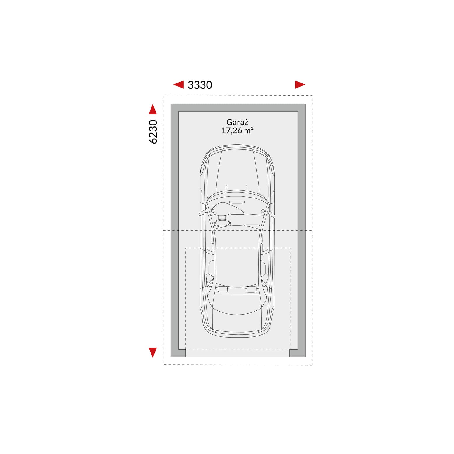 Ten jednostanowiskowy garaż, o wymiarach zewnętrznych 3,33 m x 6,23 m i powierzchni podłóg 17,26 m², oferuje optymalną przestrzeń dla Twojego pojazdu, chroniąc go przed zmiennymi warunkami pogodowymi. Jego klasyczna forma sprawia, że doskonale komponuje się z różnymi stylami domów, stanowiąc ich eleganckie i praktyczne uzupełnienie.