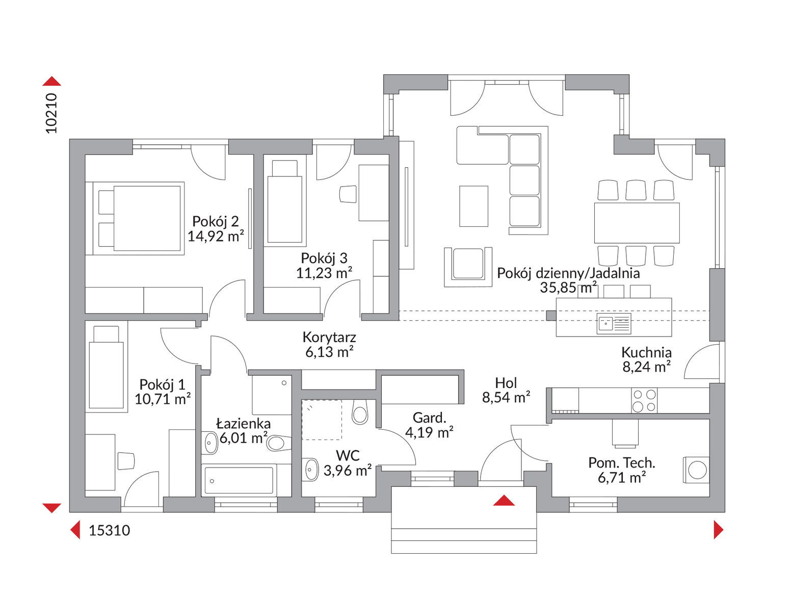 Wyobraź sobie poranki w kuchni, gdzie zapach kawy unosi się aż do jadalni, a wieczory w salonie, gdzie cała rodzina może wspólnie relaksować się bez poczucia ścisku. Ta otwarta, doskonale doświetlona przestrzeń to prawdziwe centrum domowego życia, sprzyjające integracji i dające mnóstwo możliwości aranżacyjnych. Oprócz tej wspaniałej strefy dziennej, Perfect 116 oferuje trzy komfortowe pokoje, funkcjonalną łazienkę oraz niezbędne pomieszczenie techniczne, zapewniając wygodę i prywatność wszystkim domownikom.