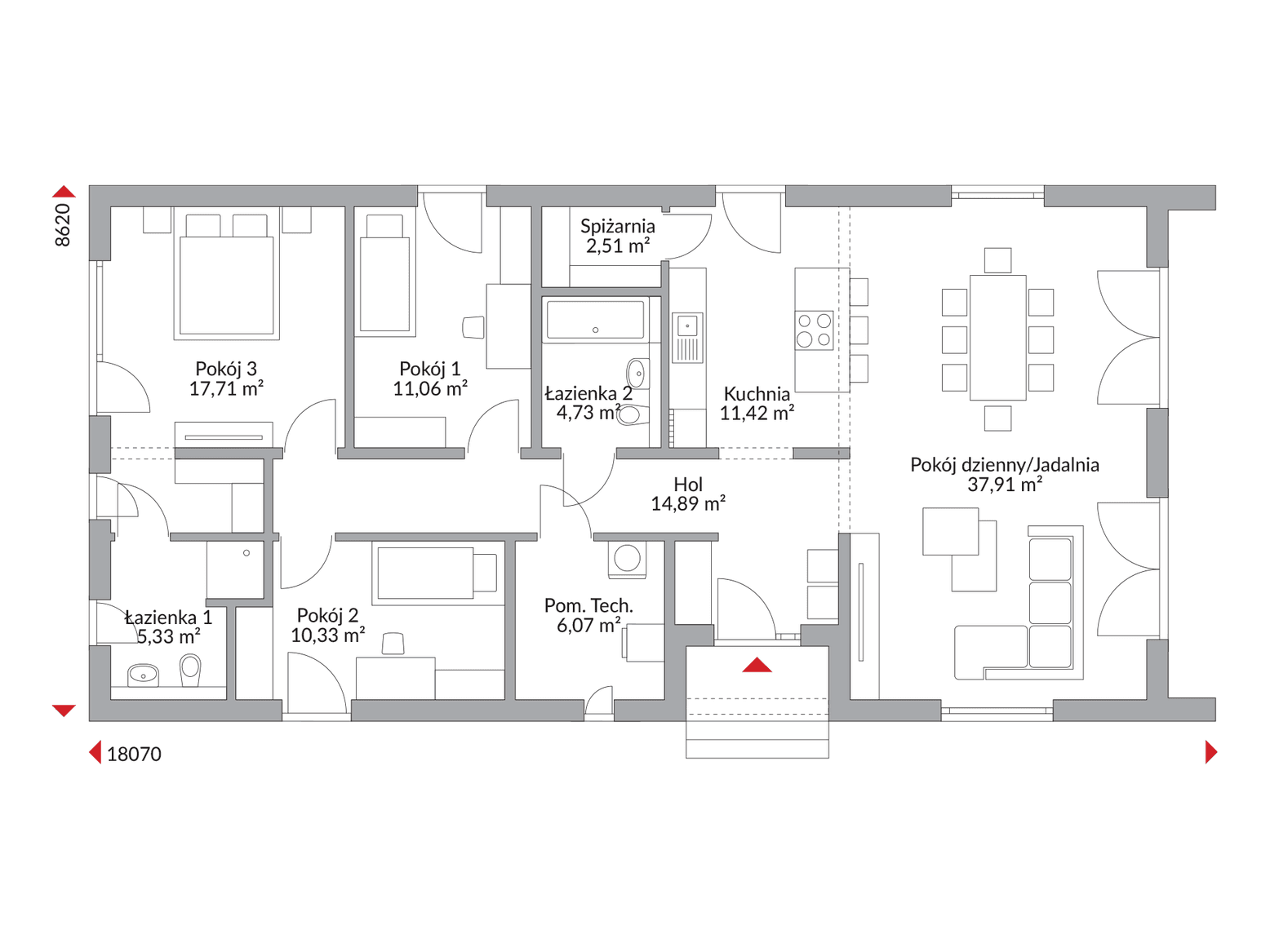 Serce tego domu bije w przestronnym salonie, płynnie połączonym z jadalnią i otwartą kuchnią wyposażoną w praktyczną spiżarnię. To tutaj codzienne rytuały nabierają magii, a wspólne chwile stają się cennymi wspomnieniami. Ale Perfect 122 to także królestwo prywatności: czekają tu na Ciebie trzy komfortowe sypialnie, z których jedna to prawdziwa główna suita z własną, luksusową łazienką i pojemną garderobą! Dodatkowa, ogólnodostępna łazienka oraz funkcjonalne pomieszczenie techniczne zapewniają komfort i porządek na co dzień.