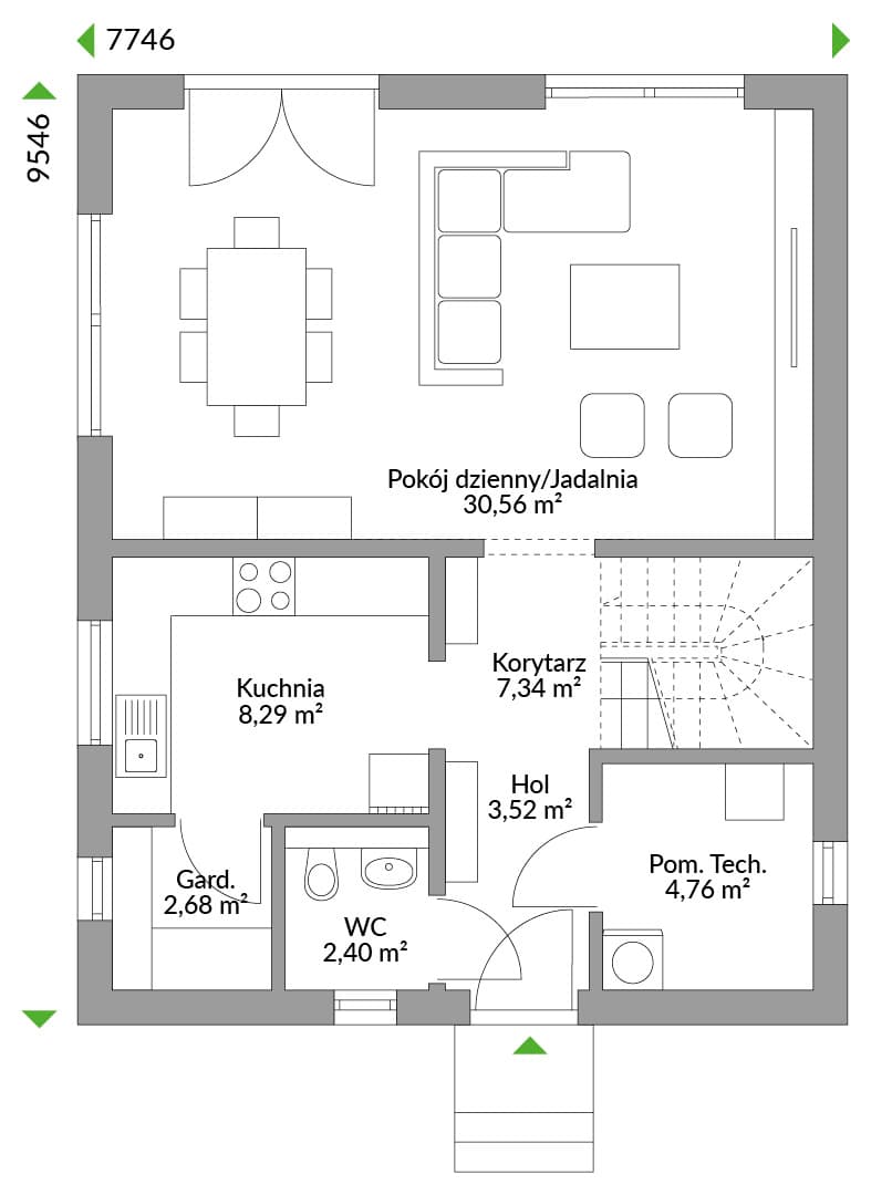 Family 119 to dom, którego przestrzeń sprzyja miłemu spędzaniu czasu z rodziną i przyjaciółmi, ale także wygodne i optymalne miejsce pracy. Z kolei miły wieczór w gronie przyjaciół możesz spędzić w swoim wygodnym salonie, którego okna wychodzą na Twój ulubiony ogród.