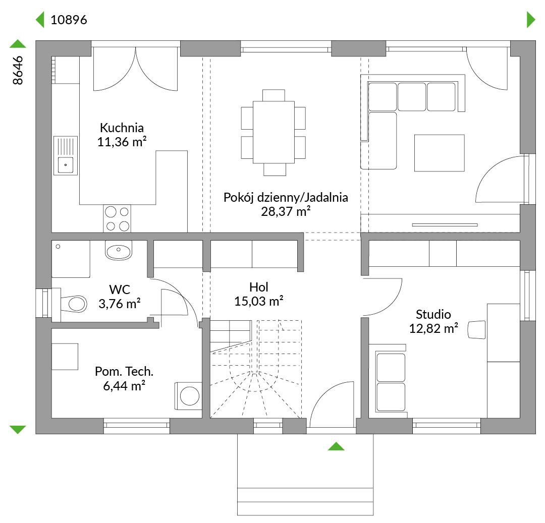 Oto największy dom z rodziny Family. Dom, który spełni Twoje wszystkie marzenia. Na parterze wersji V3 znalazło się przestronne studio, a na poddaszu pojawia się garderoba przydzielona do jednego z pokoi.