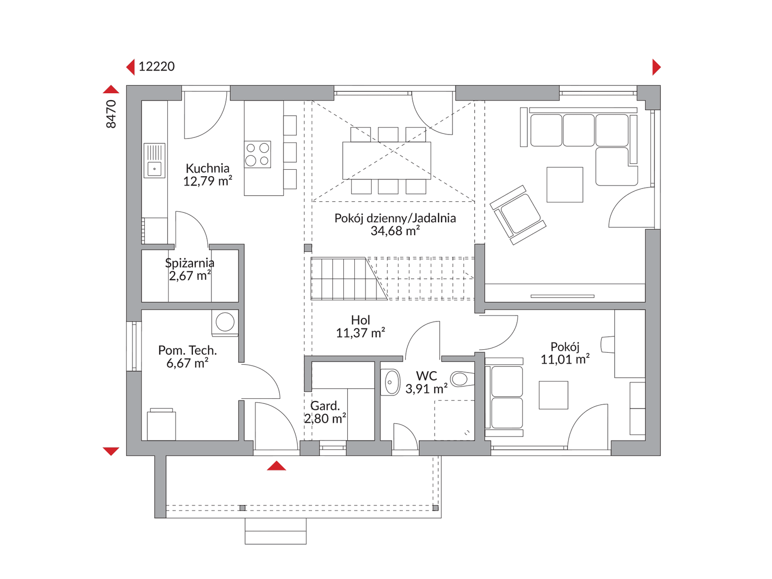 Parter domu Point 162 wita Cię przestronnym holem z praktyczną garderobą. Sercem domu jest jasna, otwarta kuchnia z funkcjonalną spiżarnią, która naturalnie łączy się z obszernym salonem i jadalnią, tworząc idealne miejsce do wspólnego życia, przyjmowania gości i celebrowania każdej chwili. Funkcjonalność tego poziomu podkreślają również wygodna toaleta dla gości oraz niezbędne pomieszczenie techniczne.